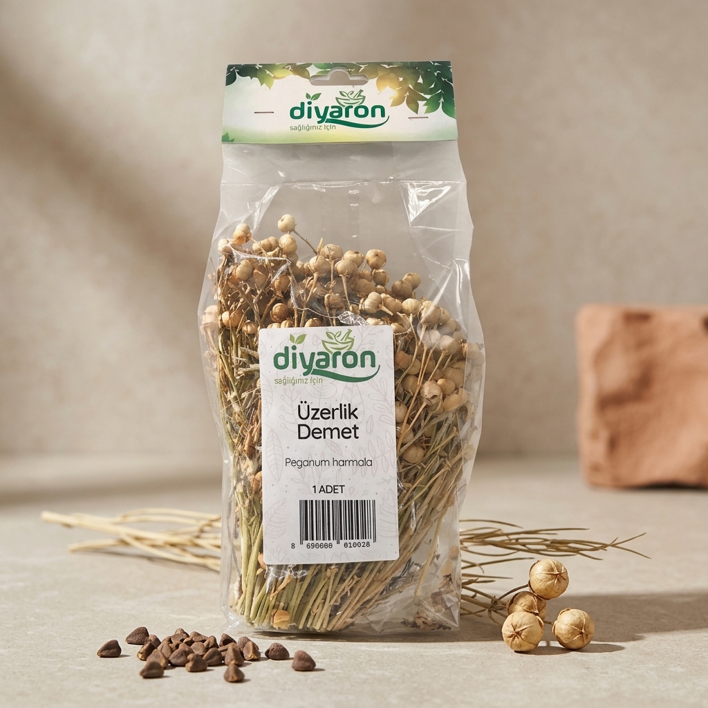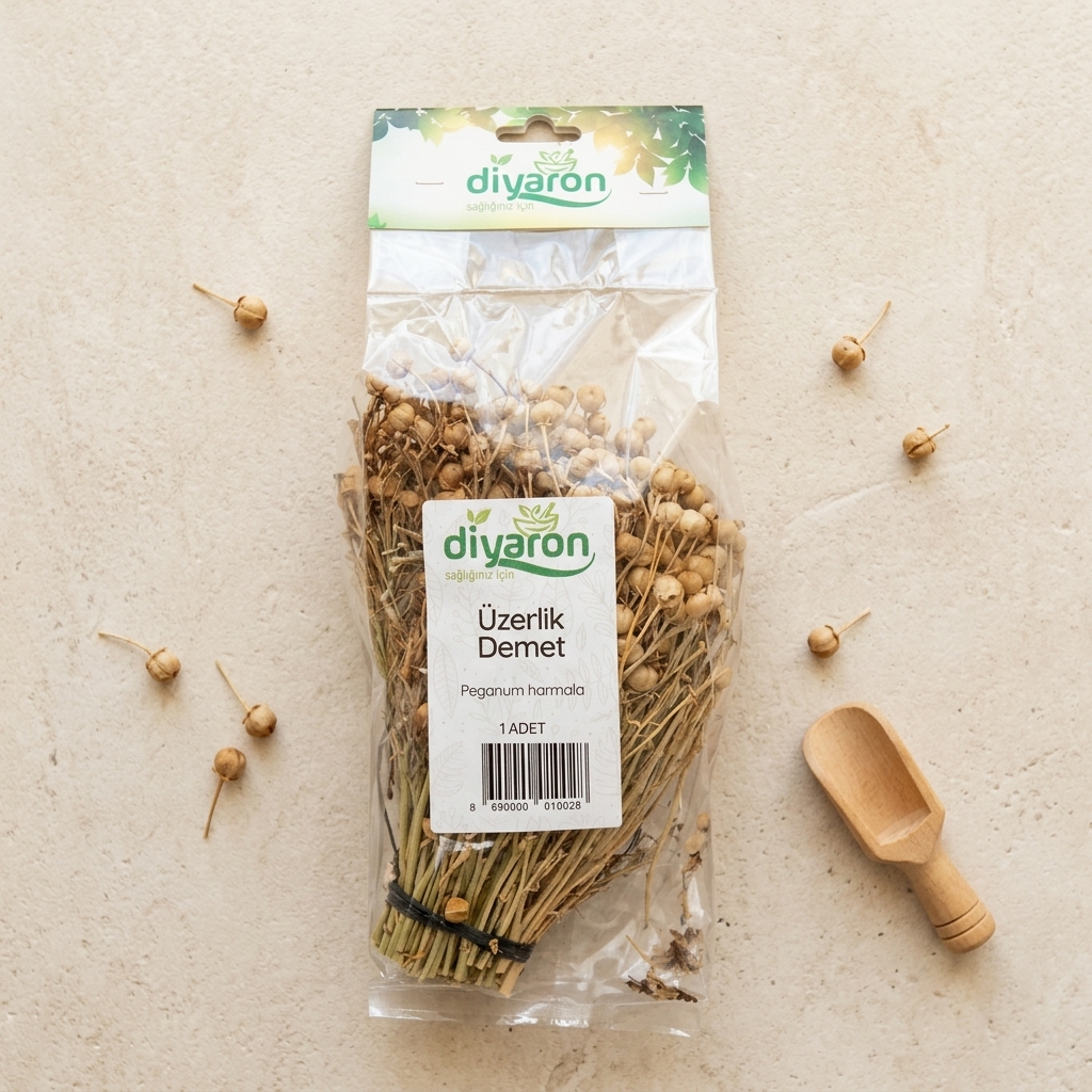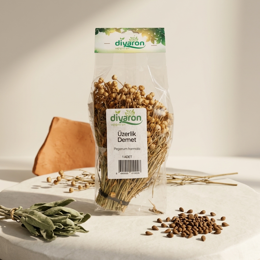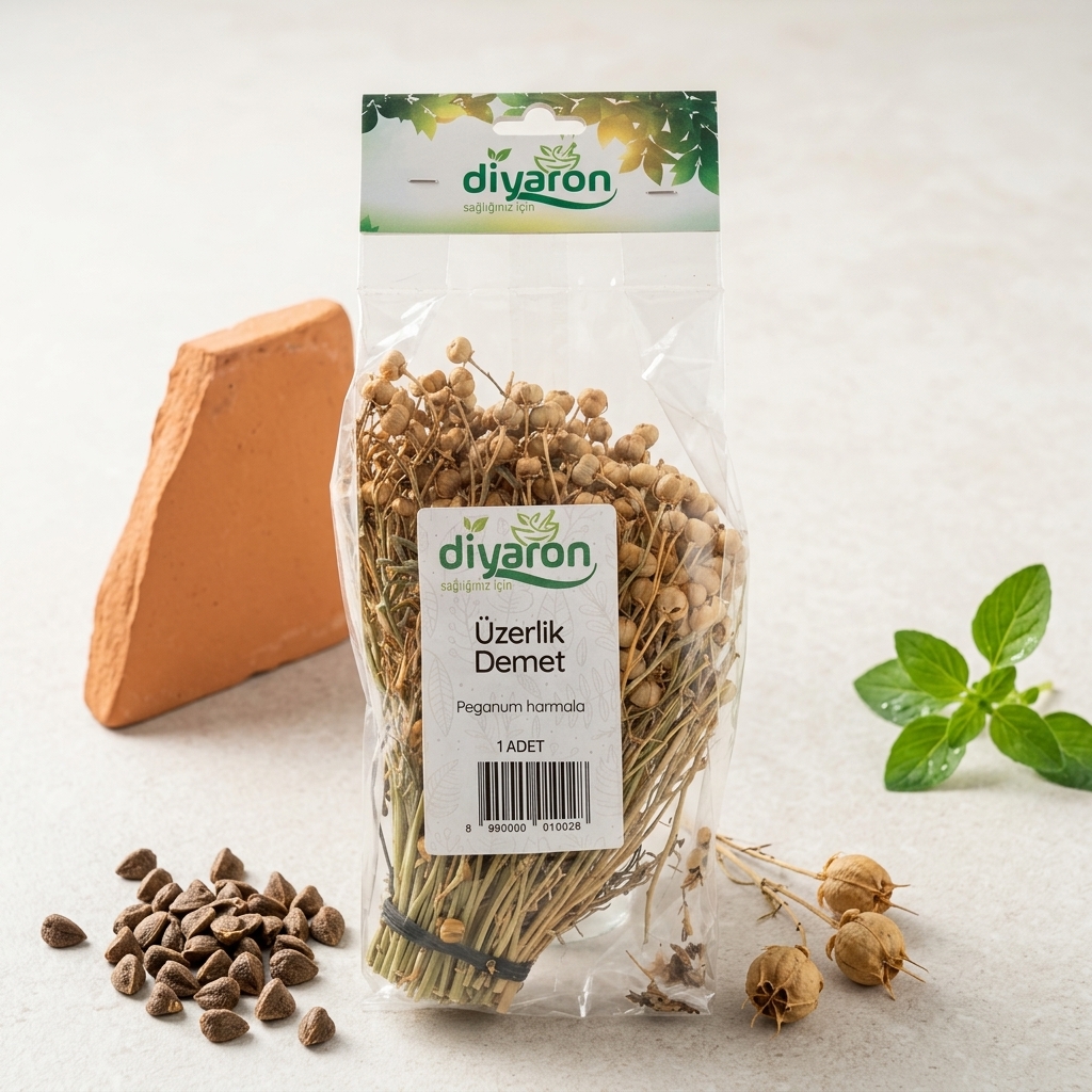 Anadolu topraklarında binlerce yıldır “nazarın ilacı” ve “mekânın ruhu” olarak kabul edilen Diyaron Üzerlik Demeti (Peganum harmala), geleneksel bilgeliği modern yaşam alanlarınıza taşıyor. 🍃☀️ Doğal bozkırların bu karakteristik bitkisi, tohum kapsüllerinin en dolgun ve etken maddece en zengin olduğu dönemde, dallarıyla birlikte bütün olarak hasat edilmiştir. Diyaron kalitesiyle, hiçbir kimyasal işlem görmeden, doğanın sunduğu en saf ve korunaklı haliyle paketlenmiştir. 💎🌾