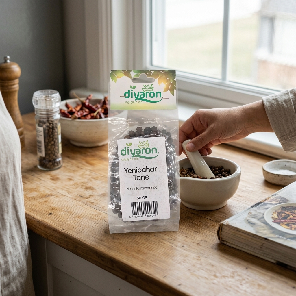 Karanfil, tarçın ve muskatın büyüleyici aromalarını tek bir tanede buluşturan, Latincesiyle Pimenta dioica olarak bilinen Diyaron Tane Yenibahar, mutfağınıza hem egzotik bir derinlik hem de geleneksel bir asalet katıyor. 🍃☀️ Orta ve Güney Amerika’nın tropikal ormanlarından toplanan bu “dört baharatın özü”, Diyaron’un yüksek kalite standartlarıyla, o keskin ve iştah açıcı aromasını kaybetmeden paketlenmiştir. 💎🥩