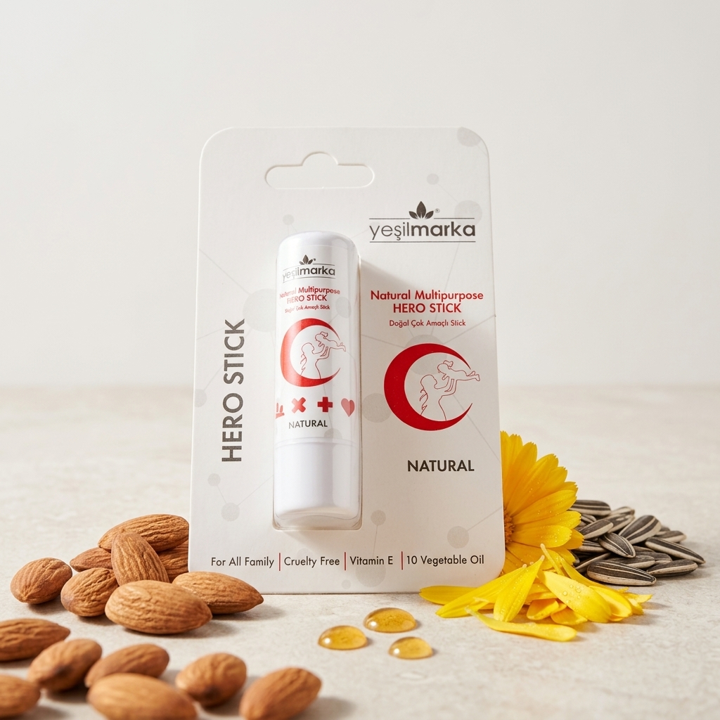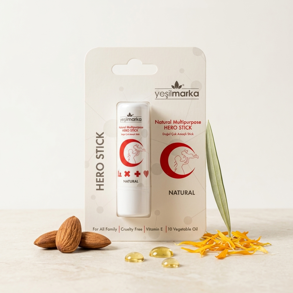 Doğanın şifalı elleri artık cebinizde! Yeşilmarka Natural Multi-Purpose Hero Stick, 10 değerli bitkisel yağın ve E vitamininin sinerjik gücüyle formüle edildi. İster rüzgardan çatlamış dudaklar, ister küçük mutfak kazaları, ister bebeğinizin pişiği… Bu stick, cildin savunma hattını güçlendirerek saniyeler içinde rahatlama ve onarım sağlar. %100 doğal, %100 kurtarıcı! 🧬💎